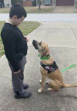 “I met James and Lexi by chance at an event and started talking with Lexi about training and service dogs. My 10-year-old son has autism, and we had our 6-month-old puppy, Biscuit, with us. Lexi told me about deep pressure therapy and how dogs can help provide comfort and regulation. I took their card, not thinking much of it at the time, but over the next few weeks I kept noticing how calm and happy my son was with Biscuit. I prayed about it and eventually reached out to James and Lexi for more information.